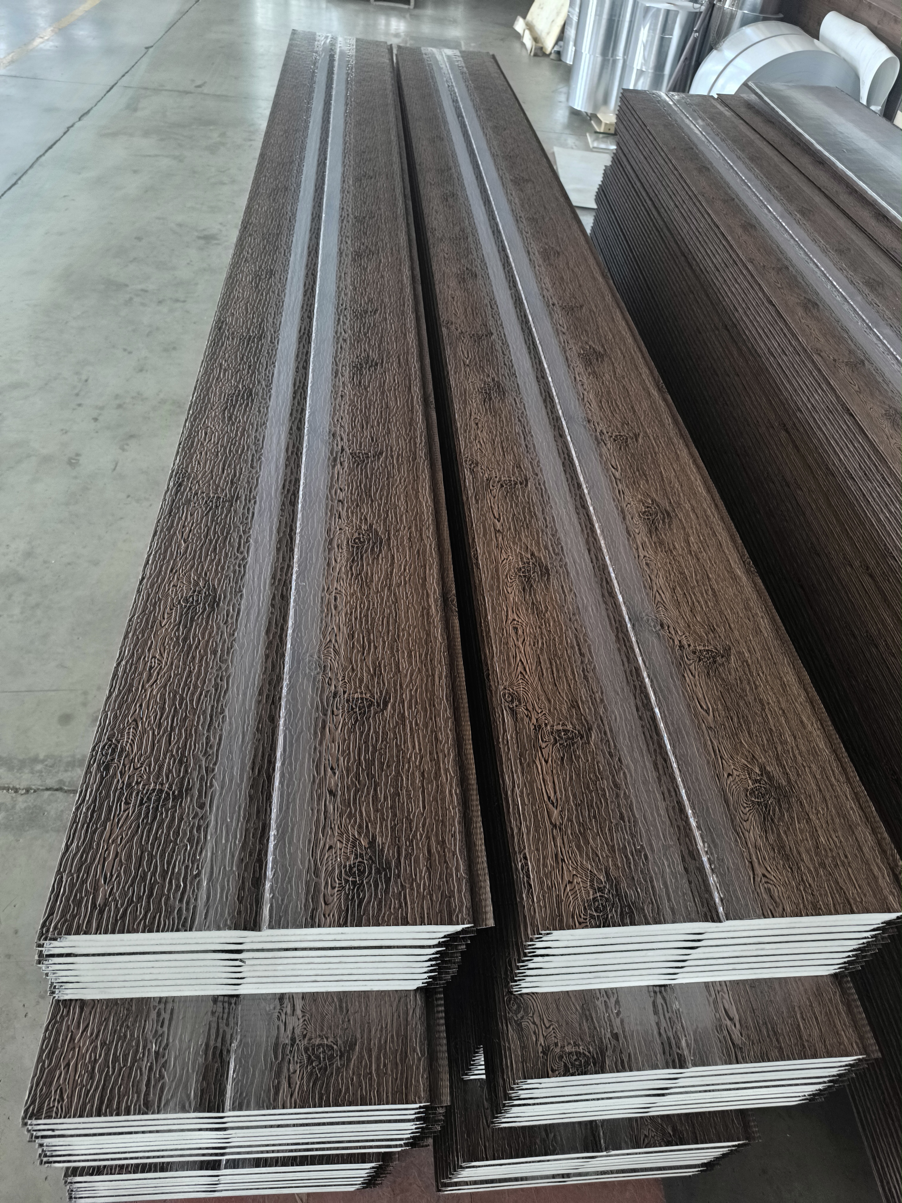 > 深鸡翅木木纹斜沟外墙金属雕花板